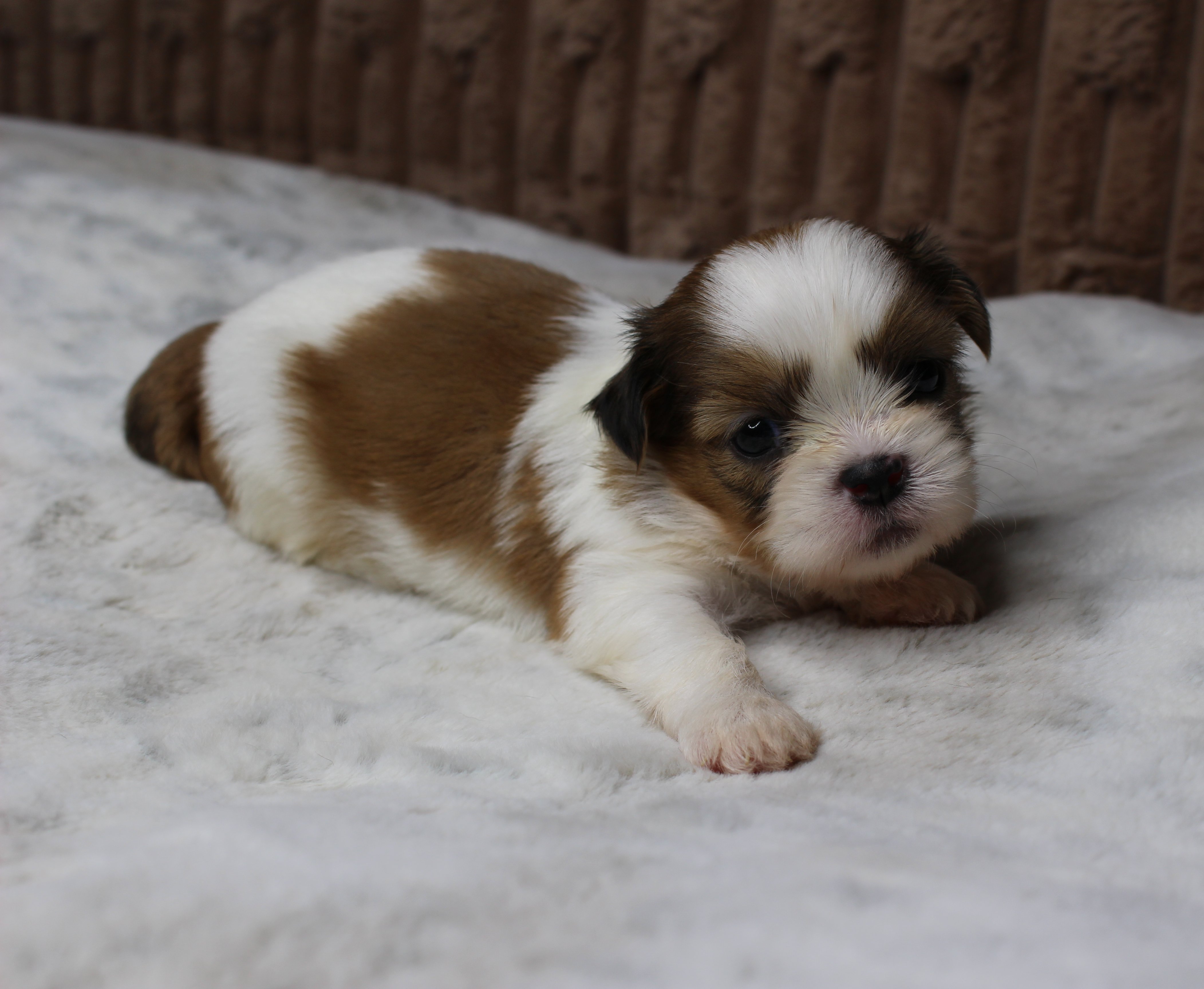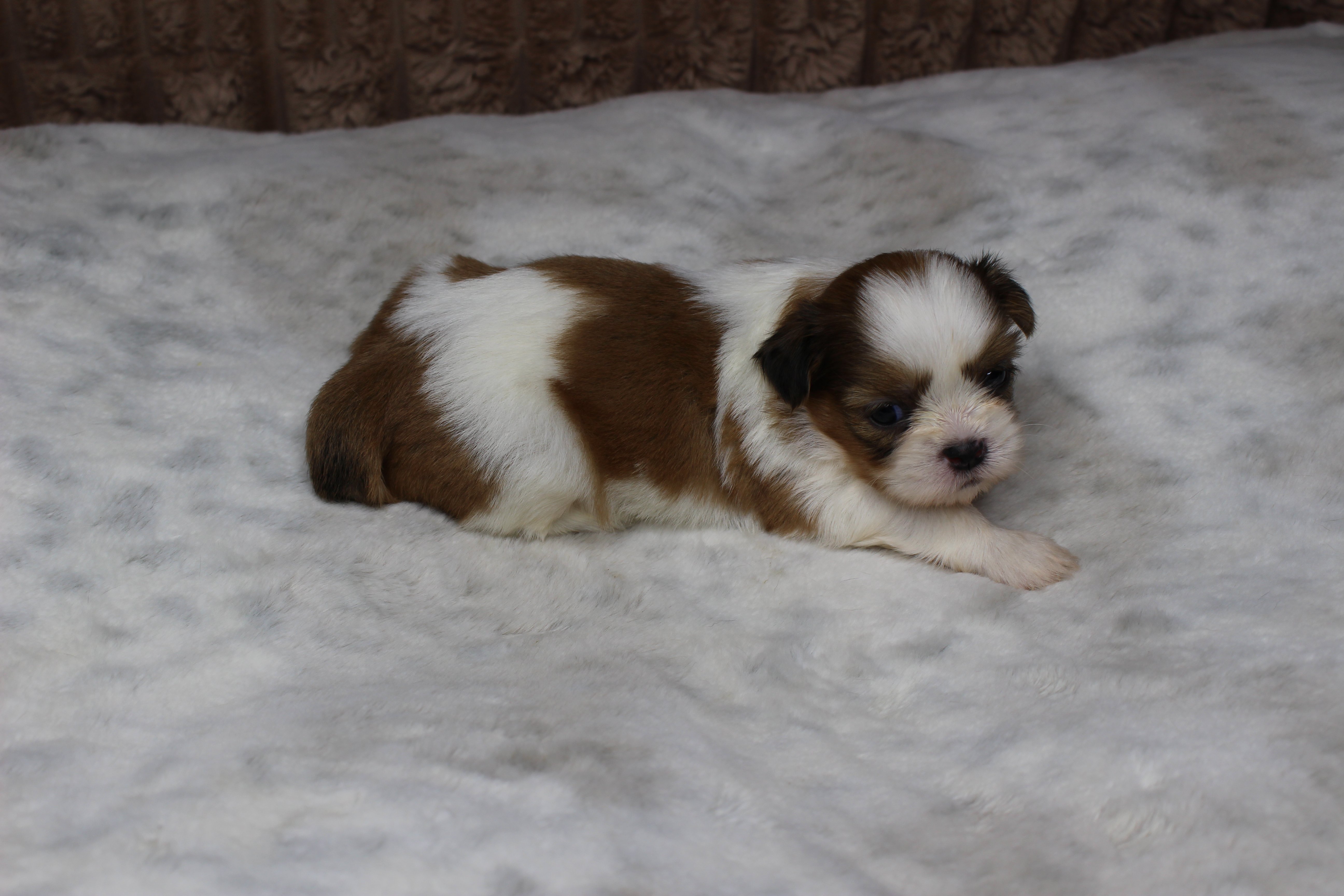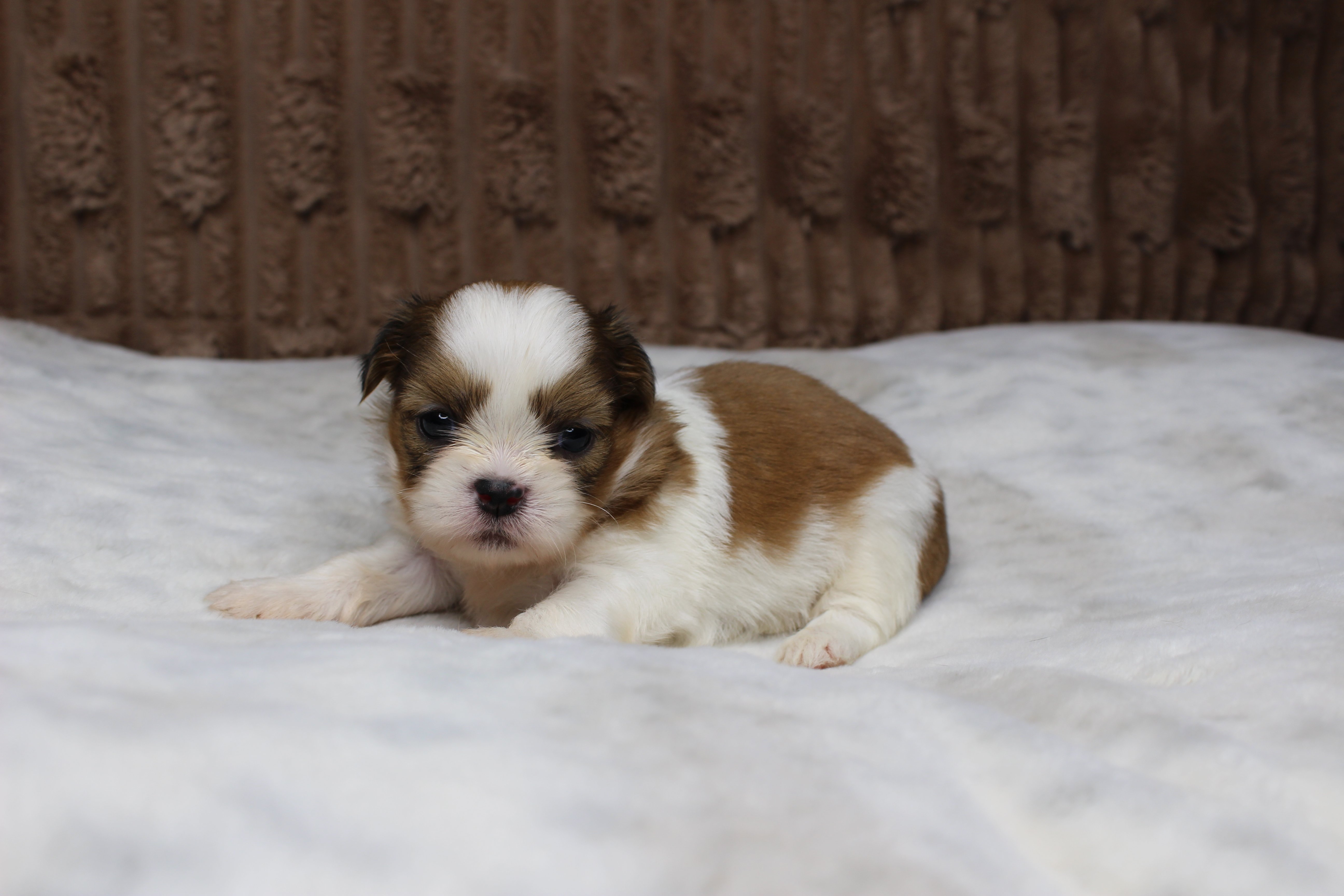 Meet Theo! He will come with AKC puppy papers, up to date on vaccines/wormings, Health Certificate from a licensed vet, and 1 year health guarantee on any genetically related illnesses. He will be 8 weeks and ready to go home on or after 5-15-26 We require a non refundable deposit of $500 to hold the puppy. Shipping is available for an additional cost of $500.00. Local pickup is also available at no additional charge.